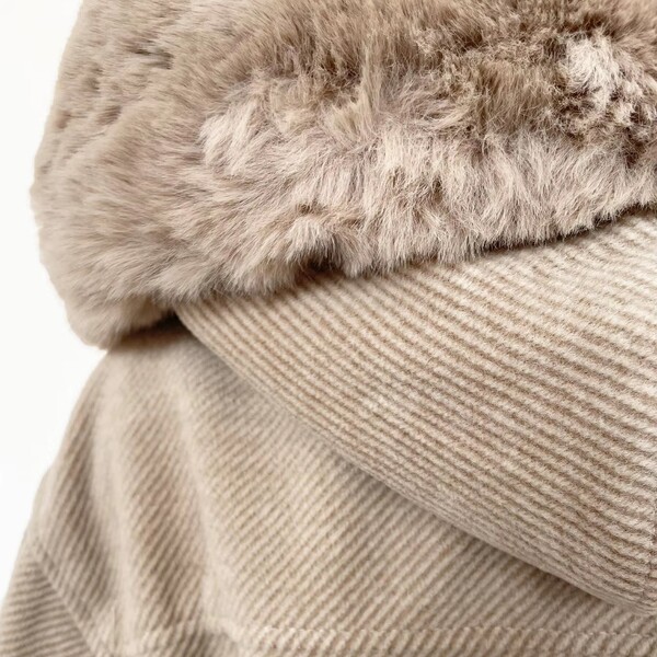 Feature: The coat is both stylish and functional. The detachable faux fur hood and adjustable belt accentuate your silhouette while adding warmth.