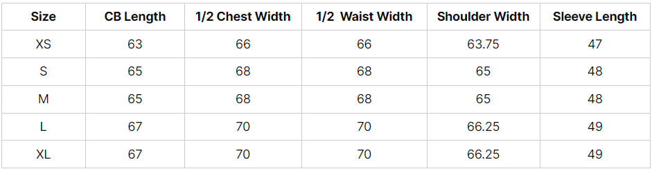 Size: XS, S, M, L, XL