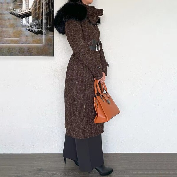 Feature: High-quality wool blend fabric for warmth and durability, Classic cut, Removable faux fur collar, Adjustable belt to cinch the waist and enhance the silhouette.