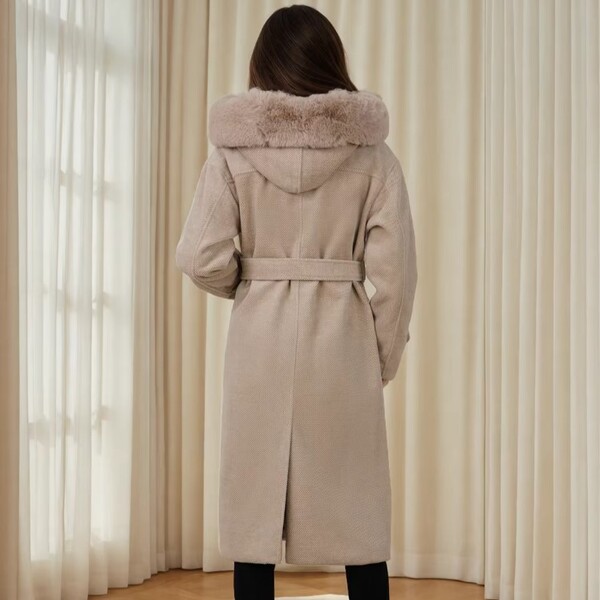 Feature: The coat is both stylish and functional. The detachable faux fur hood and adjustable belt accentuate your silhouette while adding warmth.