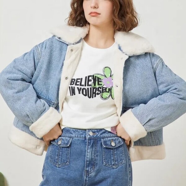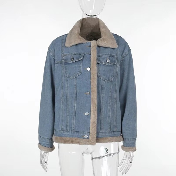 3Pcs Winter Fashion Dark Blue Jean Jacket Women