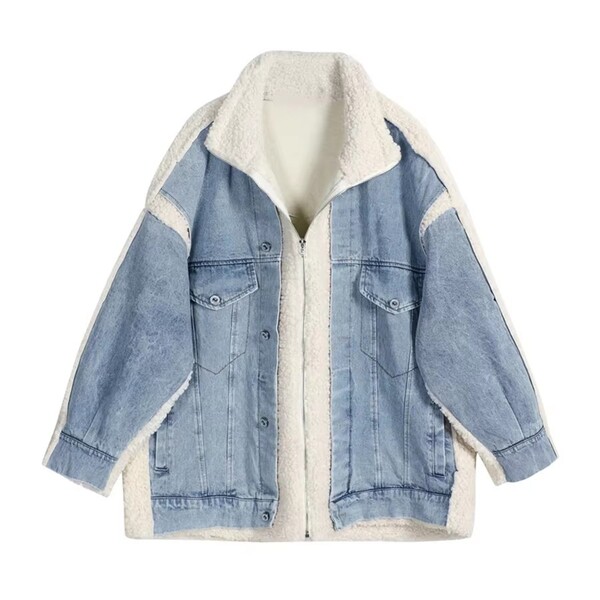 Zippered Faux Raw Hem Oversized Denim Womens Jacket